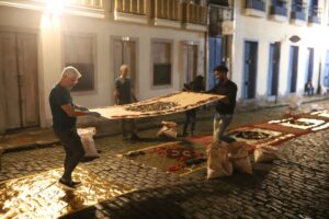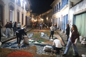 Comunidade de Ouro Preto Passa a Madrugada Criando Tapetes Devocionais para Celebrações Religiosas