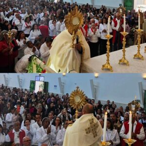 Este ato simboliza a passagem de Cristo entre o povo e reafirma a presença viva de Jesus na Eucaristia.