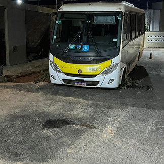 Um ônibus da empresa Rio Negro caiu em um buraco na Rua Aristildes Camilo dos Reis, em Itabirito, na noite desta segunda-feira (08/09).